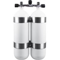 Bi bouteille Acier blanche sans culot avec cerclages Inox et robinet d'isolation